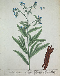 Die in London geborene Zeichnerin und Kupferstecherin Elizabeth Blackwell (1699–1758) gab in den Jahren 1737 und 1739 ein zweibändiges Werk mit handkolorierten Kupferstichen über die Pflanzen heraus. Dieses wurde aufgrund der hohen Qualität unter dem Namen „Blackwellisches Kräuterbuch" weltbekannt. Besonders die Darstellungen der Färberpflanzen haben bis heute überdauert. Ab 1747 folgte eine deutschsprachige Ausgabe in fünf Bänden, zu denen 1773 noch ein Ergänzungsband hinzukam. Die abgebildete Schminkwurz wird im Kräuterbuch als „Rothe Ochsenzunge" bezeichnet. Die Echte Ochsenzunge ist im Kräuterbuch unter der Bezeichnung „Ochsenzunge“ abgebildet. Das Originalblatt befindet sich im Besitz des Autors, der auch die Reproduktion erstellte.